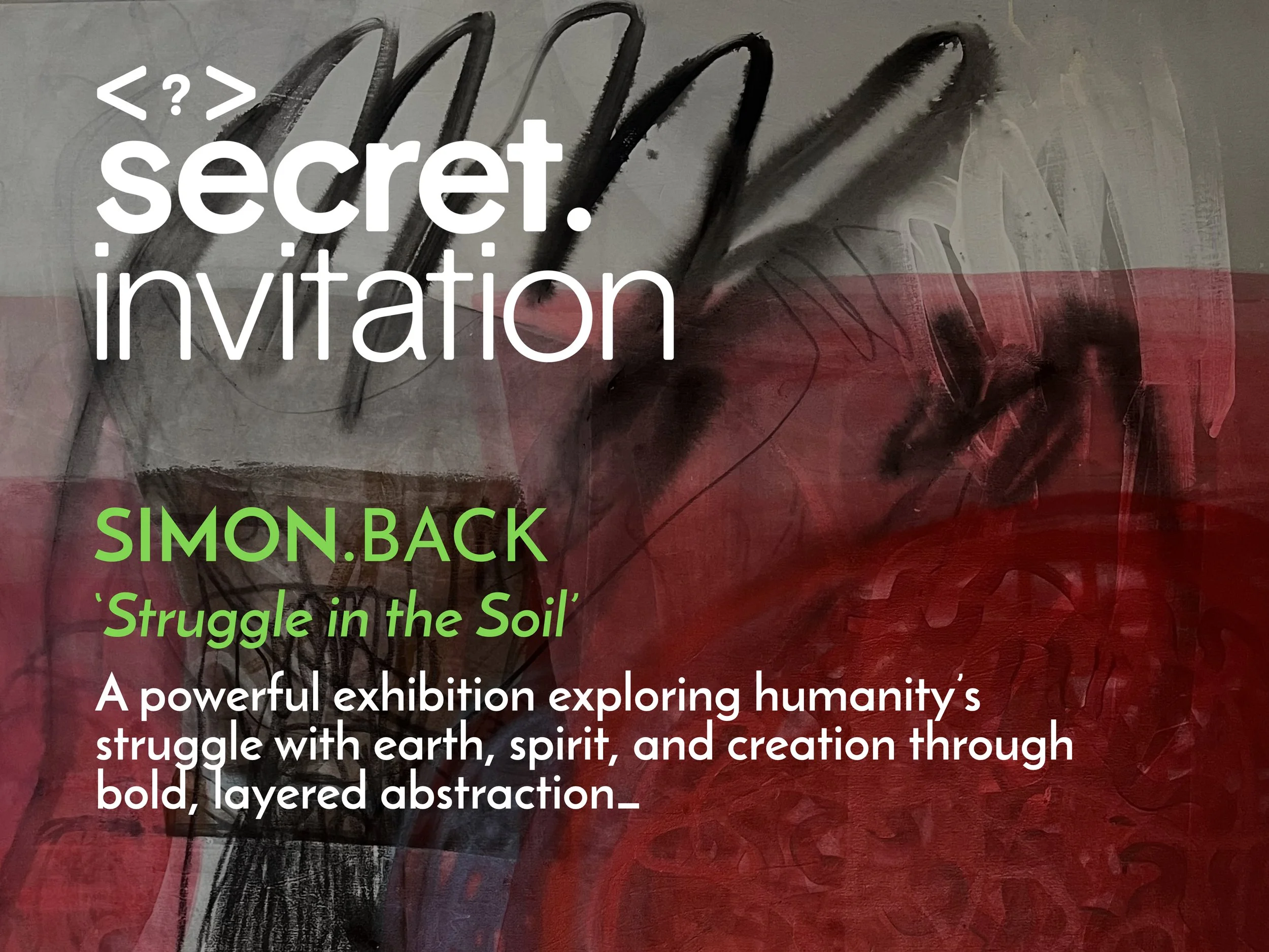 'Struggle in the Soil' continues Back’s lifelong exploration of humanity’s relationship with the earth, spirituality, and the act of creation_ This new body of work deepens the inquiry, confronting not only man’s struggle with the soil itself but also the broader confrontation with God and the condition of life in a fallen world_ At the same time, these works mirror the artist’s own wrestle with creation, the tension between intention and impulse, control and surrender_ Working with ink, acrylic, wash, and collage, he layers, erases, and rebuilds, allowing images to shift between presence and absence_ Central to his approach is what he calls “the act of painting over” where forms once visible are obscured, reshaped, or transformed, as old canvases become new ones and fragments of a hand, an eye, or a fingerprint emerge only to dissolve again_